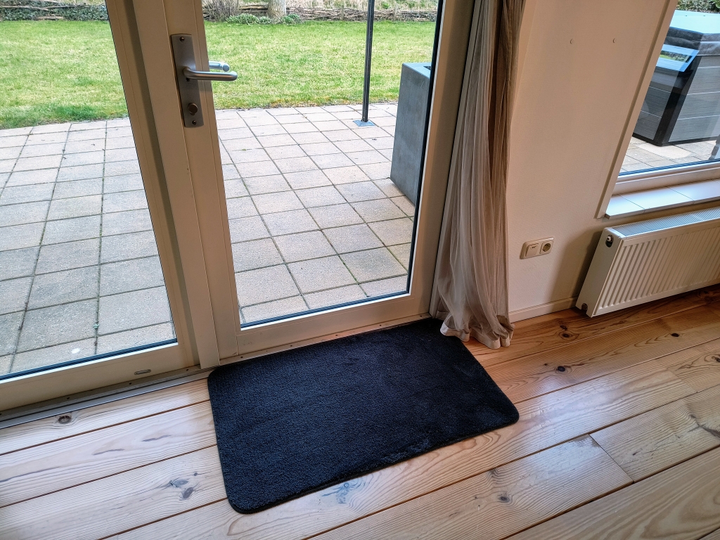 Nach der Nutzung des Pools nutzen Sie bitte wenn möglich die Fußmatte am Eingang zum Garten, um größere Wassermengen auf dem Fußboden zu vermeiden.